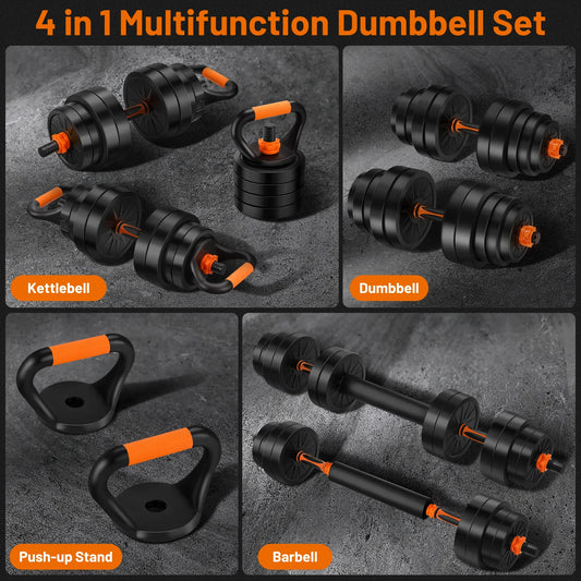 66 Lbs Adjustable Dumbbell Set, Free Weight Set with Connector, 4 In1 Weight Set as Barbell, Kettlebells, Push up Stand, Fitness Exercises for Home Gym Suitable Men/Women